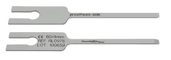 Hinweis: Bitte beachten, Meißel zeigt eine Prothesen- und eine Knochenseite